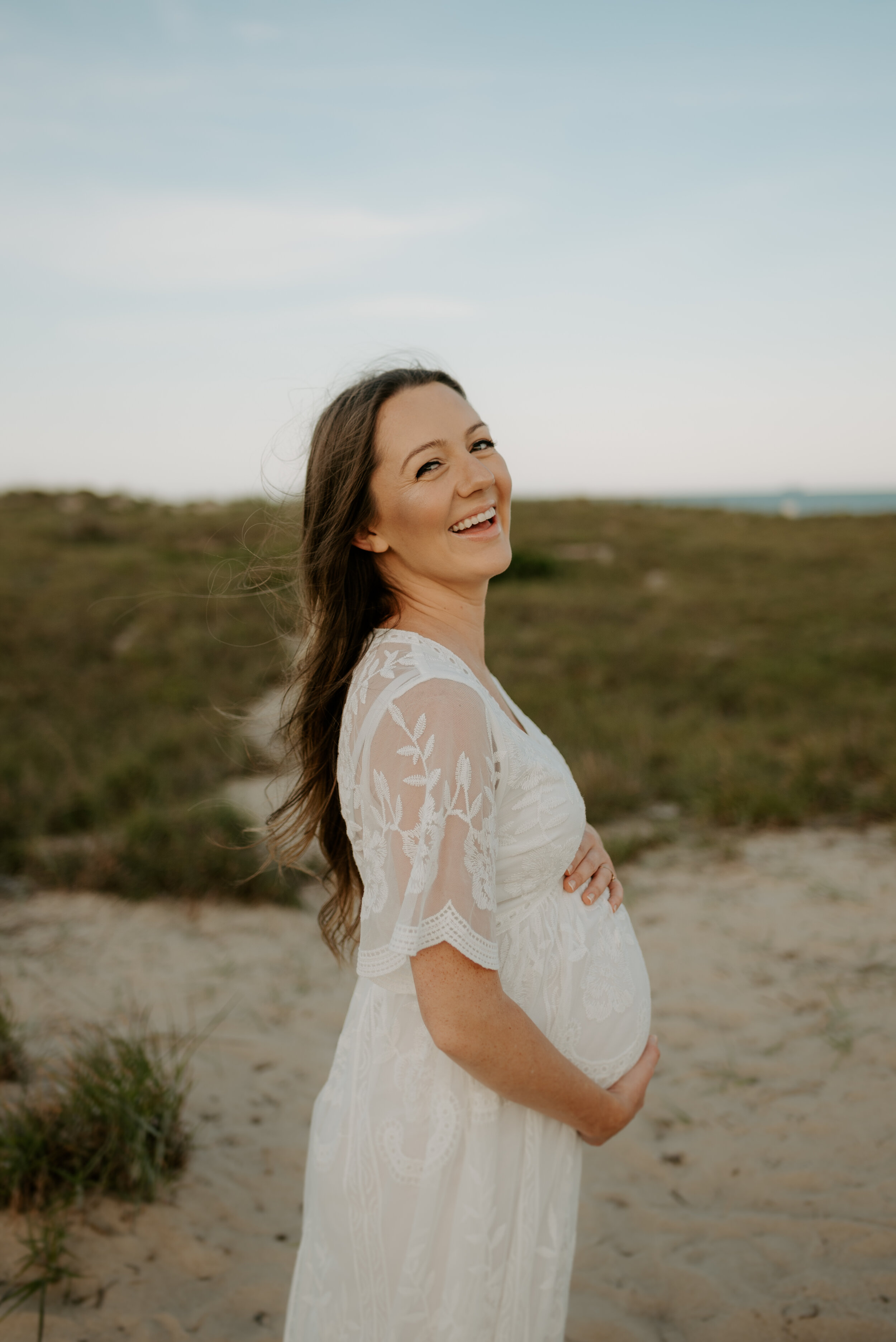 I’m so happy to have crossed paths with these two. Jordan and Dan have hearts of gold. We met at church about a year before getting to do these photos! When Jordan was in the first few weeks of her pregnancy (aka, just found out!) we ran into each other at a restaurant downtown and we got to be some of the first people they shared they news with! Little did I know that when she was sharing about her pregnancy, I was pregnant myself! I found out about a week later and rushed to tell her the irony of it. Both being first time moms, I love that during their session we got to talk all things babies. We planned their session for the Virginia Beach oceanfront in July. The sun and breeze worked in our favor. The weather could not have been more perfect for some beach maternity photos!